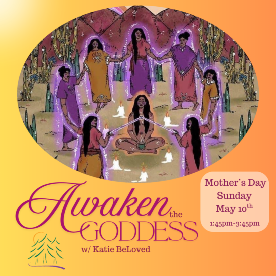 A Mothers Day Women’s Circle. Calling all Mothers, Daughters, Sisters, Aunties, Queens, Crones and Soul Sisters! Join Katie BeLoved for an afternoon of remembering your power! Awaken to the Divine…
