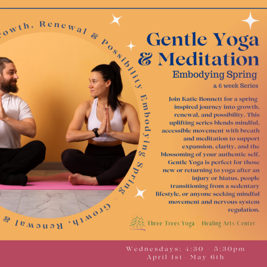 Gentle Yoga & Guided Meditation, Awakening Energy – Setting Intentions from the Heart, a 6 Week Series: In Studio or Online with Katie Bonnett